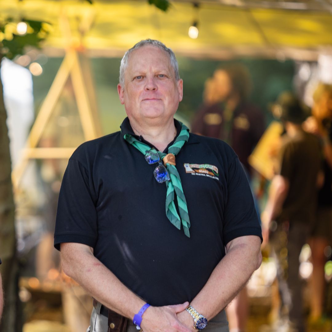 Lee returned to Scouting when his oldest child joined Beavers, and now supports Bushscout.UK nationally while also volunteering locally with 20th Worcester. An engineer by background, Lee loves the crossover between science and the outdoors, especially primitive technology, resourcefulness, and human ingenuity. You will often find him at the “knot station in disguise” at events, bringing cordage, tarps, and practical problem solving to life.
